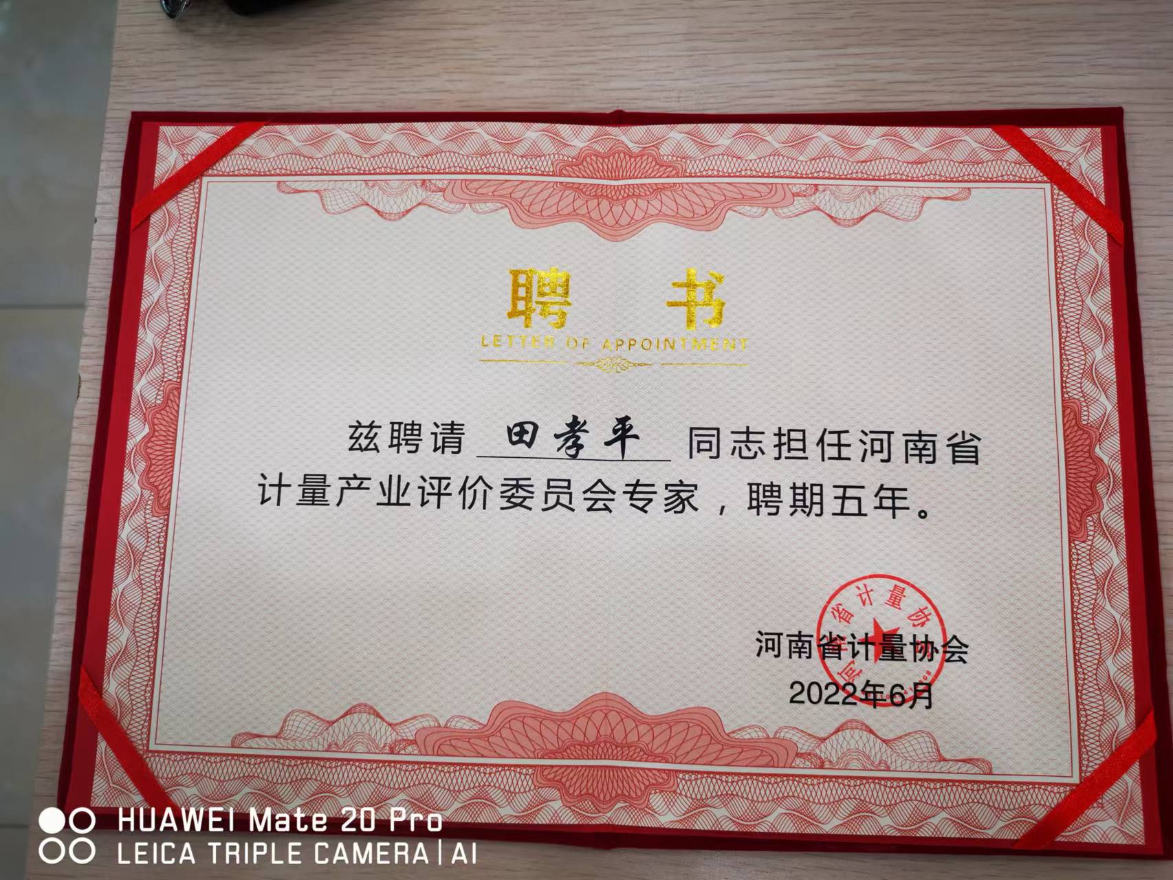 恭賀我公司田孝平總經理被聘為河南省計量產業評價委員會副主任委員及委員會專家